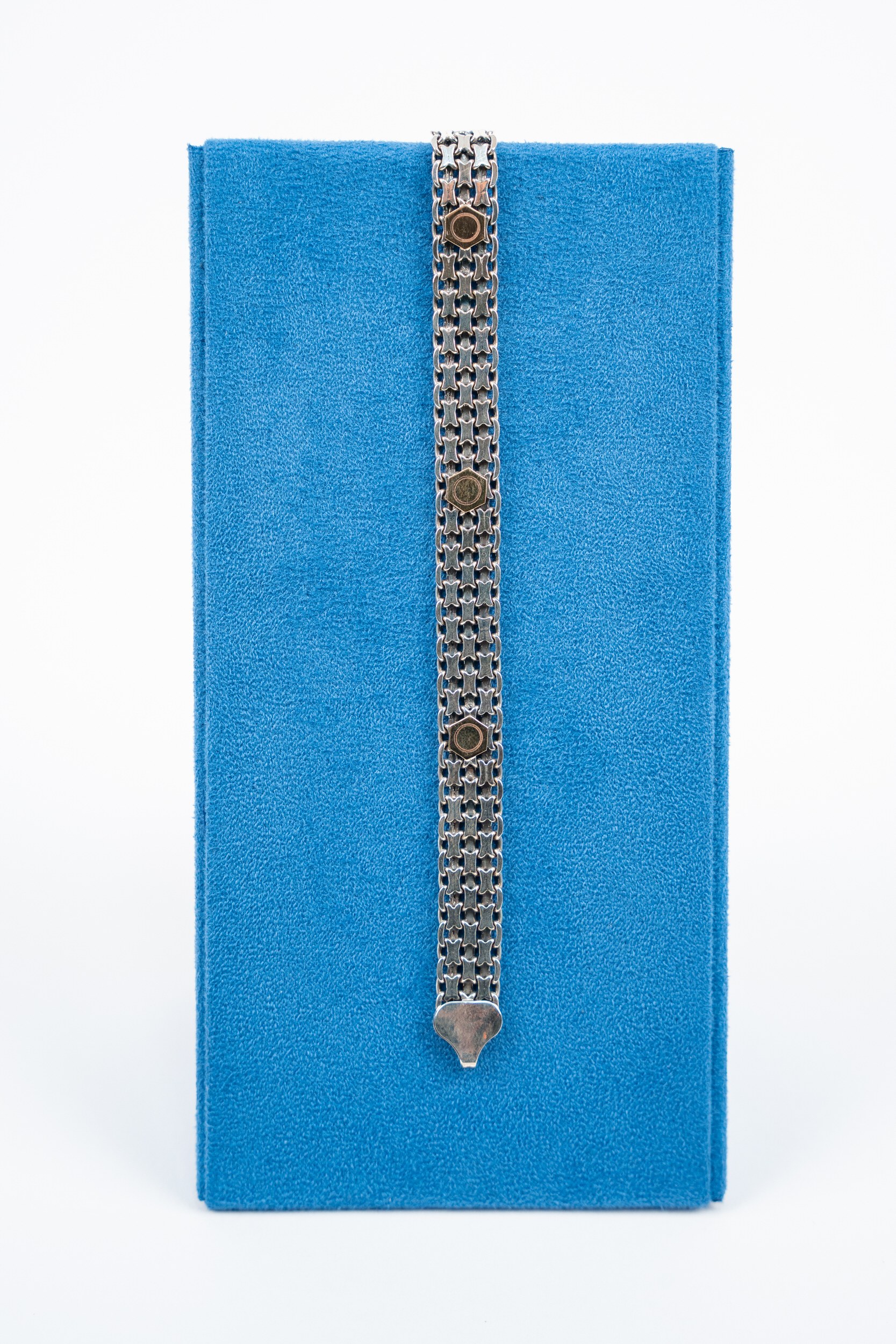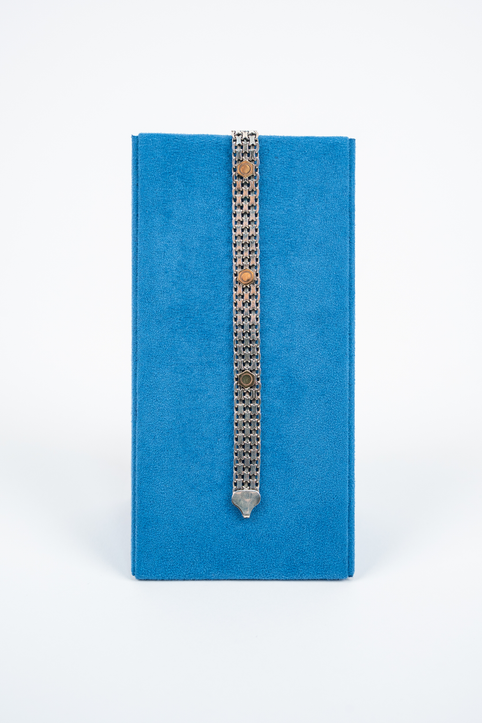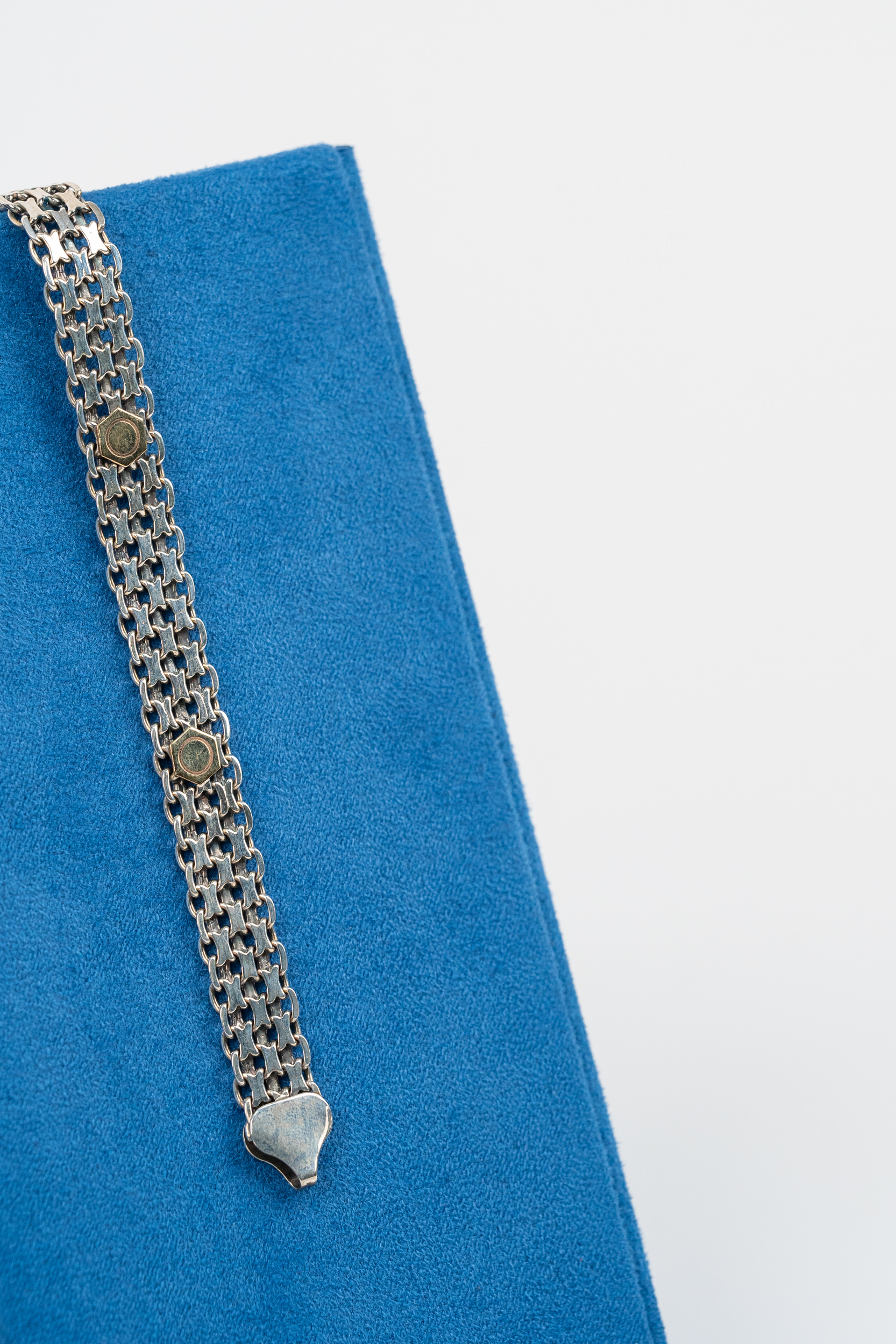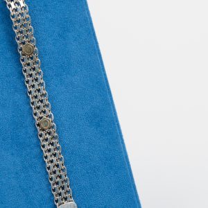 Pulseira em Prata 925 de acabamento elegante, marcada por um traço discreto mas cheio de carácter. Oferece uma sensação sólida e agradável no pulso. Uma peça versátil, perfeita para complementar o visual em qualquer ocasião, seja no quotidiano ou em eventos especiais.